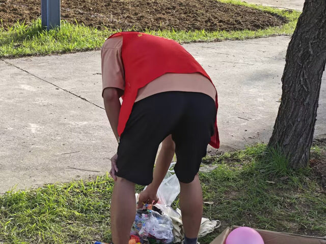 下午5点,我院“三叶草”志愿服务队的志愿者们身着统一的红色马甲,分成几个小组对湖边的垃圾进行分类收集。他们有的弯腰拾起废弃的塑料瓶,有的伸手捞起漂浮的塑料袋,每一个动作都显得格外认真和细致。随着时间的推移,装满垃圾的袋子被整齐地排列在湖边,见证了志愿者们的努力和成果。