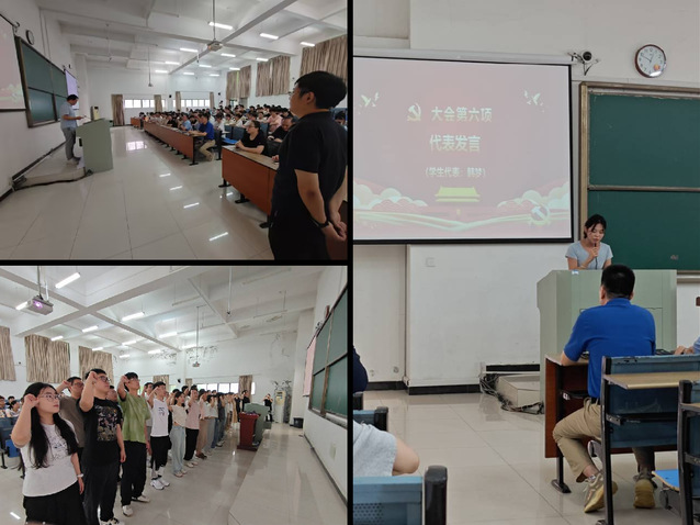“我志愿加入中国共产党,拥护党的纲领,遵守党的章程……”,在大会现场举行了新党员入党宣誓仪式。2024年新发展的25名学生党员举起右拳,面对党旗庄严宣誓,许下为共产主义奋斗终身的铮铮誓言。