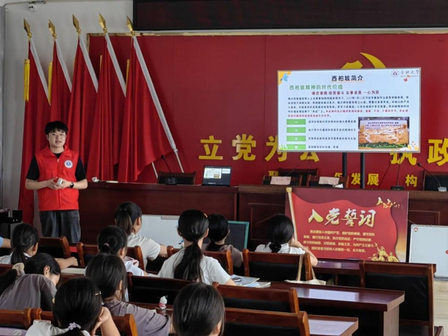 紧接着,各个年级的同学们在经历了思想政治教育后,分别由老师按班开始进行基础知识教学。根据每个班级孩子的不同情况,老师们精心设计了不同的教学课程。三叶草团队始终秉承着用心教好每一位孩子的原则,让每个老师在各自领域内发光发热。特别是在给小学同学们完成了思想教育及语文课程之后,团队还安排了一场别开生面的红色精神科普课——西柏坡精神宣讲。通过生动的讲解和丰富的图片资料,小朋友们更早、更细、更清楚地了解了党的历史,教育他们要珍惜现在来之不易的幸福生活,不忘初心,方得始终