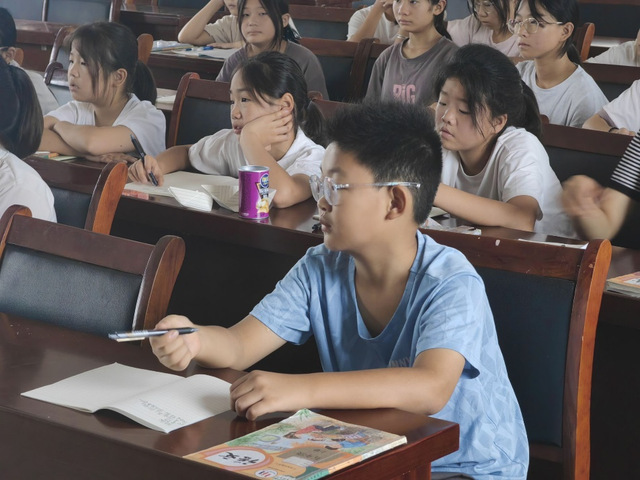 随后,团队成员为小学同学及小升初的同学带来了一场特别的英语公开课。这堂课不仅是知识的传授,更是一场充满乐趣和互动的语言文化之旅。教室里,大屏幕上播放着老师们精心准备的课件,色彩鲜艳的图片和生动有趣的动画立刻吸引了孩子们的目光。老师用流利的英语解说,配合着生动的肢体语言和丰富的表情,让孩子们仿佛置身于一个全新的英语世界。课堂上充满了欢声笑语,孩子们聚精会神地听着,眼神里充满了好奇与求知的光芒。老师们不仅讲解了基础的英语单词和句型,还通过有趣的故事和互动游戏,帮助孩子们更好地理解和记忆所学内容。