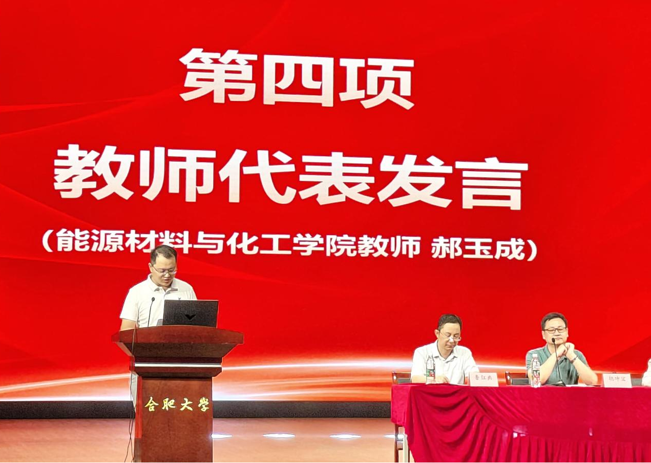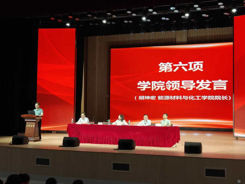 最后,能源材料与化工学院院长胡坤宏发表了热情的欢迎辞,祝贺新生成为学大家庭的新成员。他介绍了学院的情况,分享了近年来学院在科研、学生创新实践、就业等方面的成果,从最专业的角度分析了我院所有专业对国民经济发展和人们生活幸福的重要意义,鼓励同学们在化工和材料领域实现自我价值,同时他还对安徽元琛环保科技股份有限公司表示感谢。