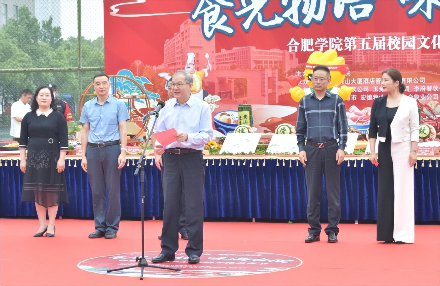 5月29日下午,由学校主办、黄山大厦集团承办的第五届校园文化美食节在三期运动场举办。党委书记王其东、合肥黄山大厦酒店董事长王建、合肥黄山大厦酒店集团总经理郑群等受邀出席,财务处、后勤集团等部门负责人及部分师生代表参加活动。