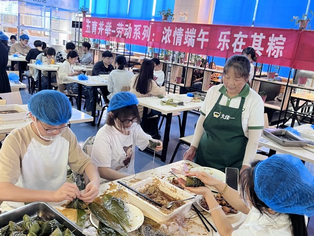 为扎实推进劳动教育,弘扬优秀传统文化,6月5日上午,学生处、团委、后勤集团在第二食堂联合举办端午主题劳动教育实践活动。