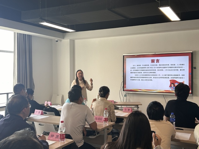 仪式结束后,杜娟书记为学员们讲授“教师职业教育素养”,重点围绕全方位构建师德师风建设新格局,倡导广大教师做有理想信念、有道德情操、有扎实学识、有仁爱之心的老师。
