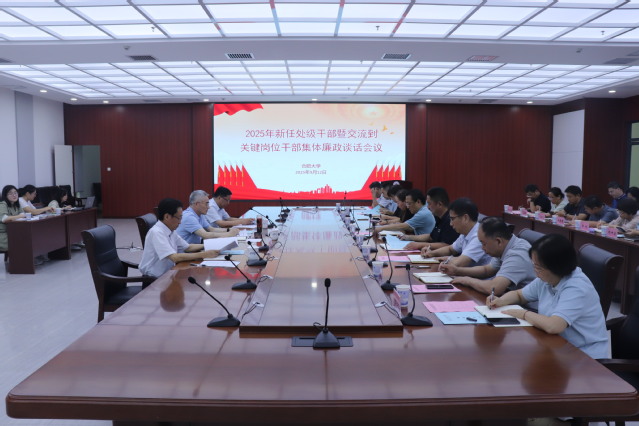 吴功福对新任处级干部及交流到关键岗位干部进行集体廉政谈话。他指出,要以政治忠诚立根铸魂,始终在严明政治纪律和政治规矩中锤炼政治品格;要以清正廉洁修身正己,始终在秉公用权中筑牢拒腐防变的思想防线;要以优良作风正本清源,始终在锲而不舍落实中央八项规定精神中涵养清风正气;要以责任担当履职尽责,始终在压实“一岗双责”中扛起全面从严治党政治责任;要以严正家风涵养清朗政风,始终在管好家庭中践行廉洁齐家的内在要求。他要求新任处级干部及交流到关键岗位干部要以此次新任职为起点,将各项纪律规矩内化于心、外化于行,以更加饱满的热情、更加务实的作风和更加清廉的形象投入新的工作岗位,为推动学校建设发展贡献力量。