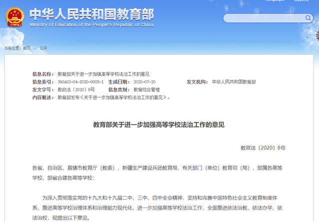 为深入贯彻落实党的十九大和十九届二中、三中、四中全会精神,坚持和完善中国特色社会主义教育制度体系,推进高等学校治理体系和治理能力现代化,进一步加强高等学校法治工作,全面推进依法治教、依法办学、依法治校,现提出以下意见。