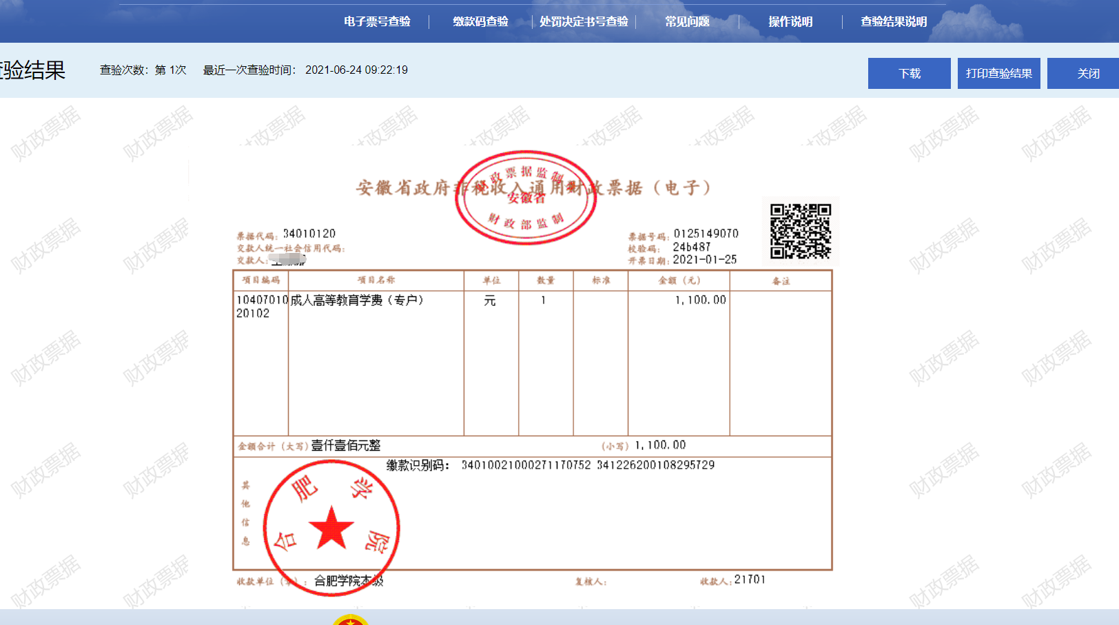 、缴费信息查询中查询到缴款识别码