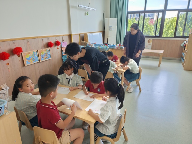 随后,主题活动“蒙眼舞动画”正式拉开帷幕。孩子们先在纸上画下自己,然后蒙上眼睛,伴随着音乐开始随意舞动、走动。音乐停止的瞬间,孩子们立马抱住身边的小伙伴并睁开眼睛,接着交换画并在彼此的画中加上任意元素。孩子们的画在互动中变得充满创意和惊喜。 在分享总结环节,3组孩子主动勇敢地走上台前分享他们的作品,每个作品都凝聚着孩子们的友谊和创意。最后,全部孩子拿着自己的作品拍照留念,记录下这难忘的时刻。 此次活动通过绘画团体心理辅导的形式,不仅让孩子们建立了友好的人际关系,感受到了拥抱的快乐,还通过合作绘画增强了他们的沟通能力和互动交流能力。相信这样的活动会在孩子们的心中留下美好的回忆,为他们的童年增添一抹绚丽的色彩。(撰稿:胡雨晴 初审:张弦乐 复审:王迅 终审:刘良宏) |