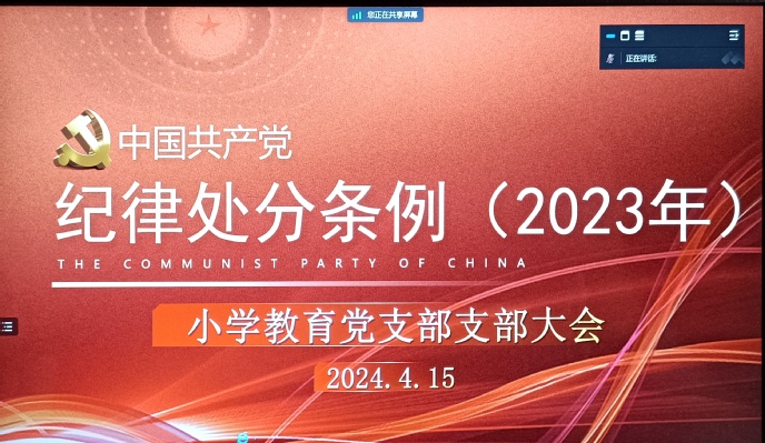 为深入学习好、宣传好、贯彻好新修订的《中国共产党纪律处分条例》,进一步加强纪律作风建设,增强党员纪律规矩意识,2024年4月15日,教育学院小学教育党支部组织召开新修订《中国共产党纪律处分条例》学习交流会。会议由小学教育党支部书记王多慈老师主持,支部全体党员参与。