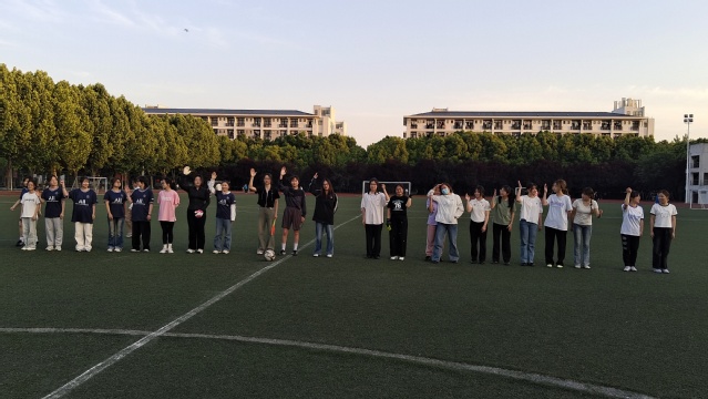 5月7日18时15分,在合肥学院二期田径场上进行了中外教育联队和管理学院的女足比赛。整个赛程历时七十分钟,分为上下两个半场。
