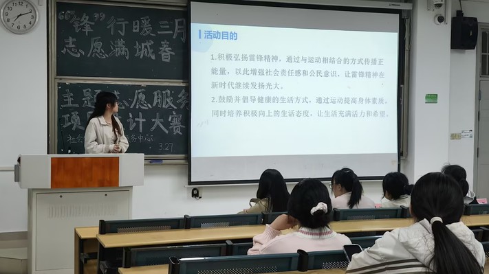 在比赛过程中,各参赛队伍依次上台展示自己设计的志愿服务方案。他们围绕雷锋精神的内涵,结合当下社会热点和学校的实际需求,提出了许多富有创意和实践意义的项目。参赛选手们通过精彩的PPT展示、生动的案例分析和富有感染力的讲解,充分展示了他们对雷锋精神的深刻理解和践行雷锋精神的决心。评委们则从方案的创新性、可行性、社会影响力等多个方面进行了认真评审,并与选手们进行了深入的交流和互动,提出了宝贵的意见和建议。