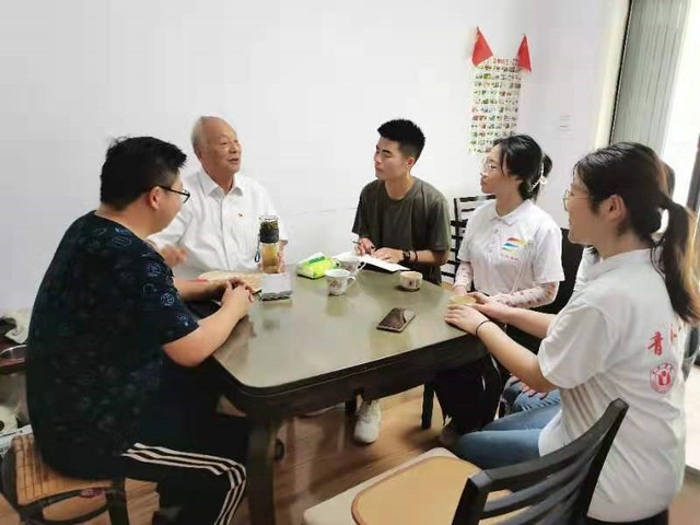 留住红色记忆,凝聚前行力量 ——教育学院“青春向党 育你同行”暑期三下乡社会实践活动报道(四) 2021年7月22日,在南艳湖居民区党群服务中心王书记的带领下,合肥学院教育学院“青春向党,‘育’你同行”社会实践团队的党员志愿者们来到89岁的抗美援朝老兵张振行家中。 隔着老远,志愿者就看见老人在阳台上向他们招手。当看见志愿者带来的水果和牛奶时,张振行匆忙摆手,他语重心长地对着王书记说:“小王呀,这些丫头都还是学生,身上哪有钱,哪用得着带这些。”亲切的称呼让志愿者们心中倍感温馨。