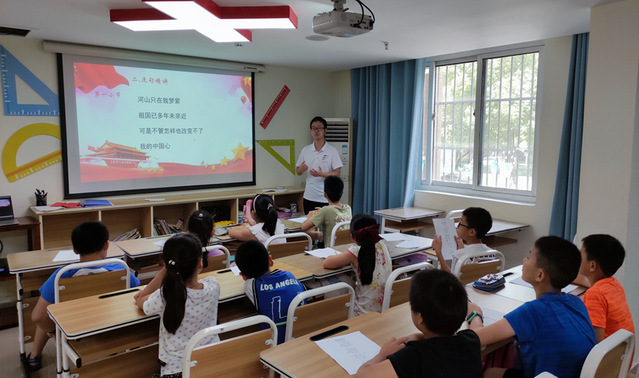 今日志愿者继续诗歌《我的中国心》的教学。通过上节课学习,同学们已经能够熟练地朗读作品。在老师的讲解下,同学们对这首诗的理解逐渐加深,朗读时的情感表达也更加饱满。朗朗上口的诗词读出了孩子们对祖国的深情赞美和无限向往,令志愿者们心潮澎湃、热血沸腾。