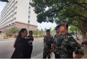 9月27日上午,教育学院院长江芳教授,党委书记刘良宏,副院长卫萍教授在21级新生辅导员张弦乐和学生会干部的陪同下慰问承担军训任务的教官和21级参训的新生,并为大家准备了慰问礼物。