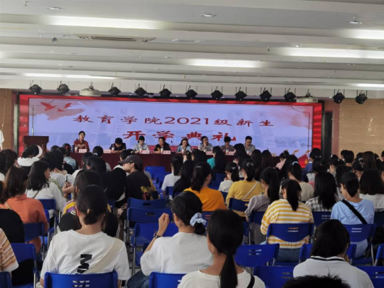 新起点,新未来,“新”在一起。教育学院迎来新一批青春飞扬的莘莘学子,9月30日上午,教育学院三期大学生活动中心举行2021级新生开学典礼。本次典礼由分团委副书记张弦乐老师主持,教育学院院长江芳教授,副院长卫萍教授及各专业负责人参加典礼。