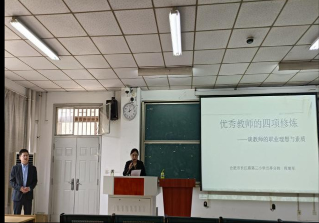 10月28日下午,教育学院邀请校友代表程朋军返回母校参加学院优秀校友交流会,交流会由院长江芳教授主持。学院师生代表出席了此次交流会。 首先,院长江芳教授介绍了优秀校友代表程朋军的基本情况,程朋军是合肥市长江路第三小学兰亭分校校长,并代表学院对程朋军出席此次交流会表示热烈的欢迎,也希望程朋军校长对学院建设和发展提出宝贵建议,共同将学院建设得更加美好。 交流过程中,程朋军校长作为优秀校友的代表结合自身经历总结出了要当好一名优秀教师,要做到“心中有爱,手中有法,行中有为,热爱阅读”,即一名优秀的老师要有强烈的社会责任感,有胜任教育教学的能力,有自己独到的社会哲学,有渊博的知识积累。随后,程朋军校长又提出了三项大学生规划的建议:一要学好专业知识,二要积极参加实践活动,三要把事情尽量做到最好。交流会最后,程朋军校长向同学们展示了自身的人生感悟语录,同时表达了对同学们的美好祝福。 通过此次校友交流会,加深了同学们对教育专业的了解,对我院人才未来培养和发展有指导意义,相信在优秀校友的支持和帮助下,在各位同学的努力下,教育学院的发展将会更上一层楼。(教育学院记者 荣岚 任心怡)