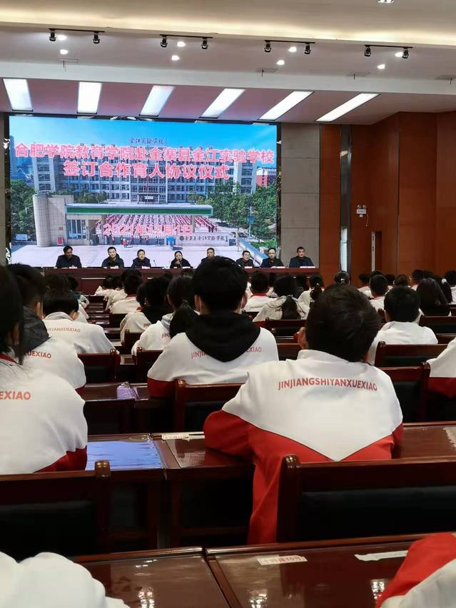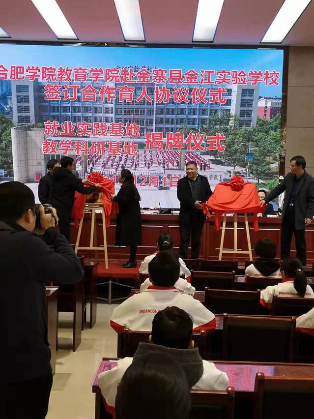 12月1日,合肥学院教育学院与金寨县金江实验学校签订合作育人协议暨“就业实践基地”、“教学科研基地”揭牌仪式在金江实验学校报告厅隆重举行。