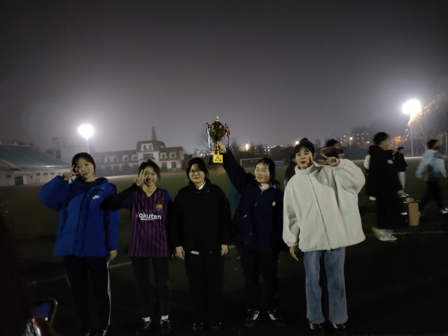 经过数十场的比赛,教育学院女足队和人工智能与大数据学院女足队脱颖而出,于12月12日晚上八点在二期操场共同争夺老生杯冠军席位。 随着主裁判一声哨响,我方球队队队员闻声即动,趁对方球队不备,立刻抢夺到足球,冲破了对方球队的防守阵势,抓住对方守门员的防守空缺,猛进一球,抢先获得了本场比赛的第一分。而后我方球队势气高涨,凭借着默契的配合和高超的技术,掌握了赛场的主动权,在短短十分钟内又进一球!中场休息时,我方球队仍不松懈,积极讨论战术。下半场比赛节奏仍然很快,双方都进行了猛烈的进攻,虽成效均不明显,但双方皆毫不示弱。时间一分分流逝,双方仍没有进球,比赛陷入焦灼,一直僵持着。随着哨声的响起,比赛得分最终定格在2:0,教育学院女足队获得了最终的胜利! “老生杯”比赛到此完满结束,教育学院女足队摘得桂冠。本次比赛仍秉持着“友谊第一,比赛第二”的原则,并且充分体现了教育学院女足队优秀的团结合作精神和顽强拼搏的毅力。我们相信教育学院女足队前途似海,光芒万丈! (教育学院记者吕新宇,王苏尉)
