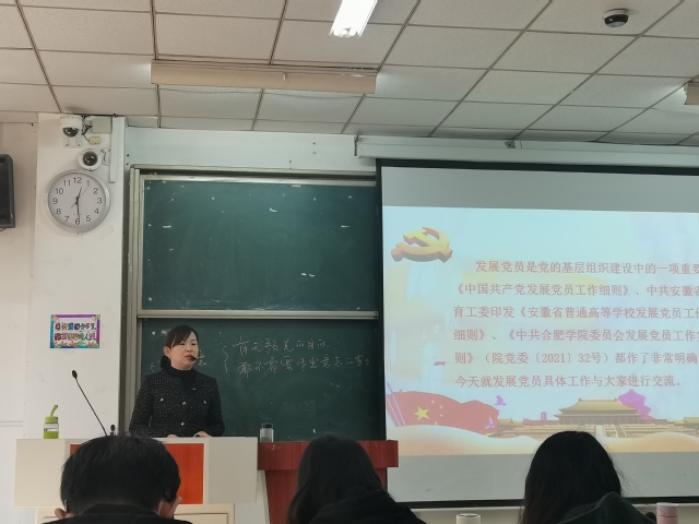 11月25日中午12点25分,教育学院入党积极分子培训班第八次党课在3栋101教室如期举行。此次党课主讲人为合肥学院党委组织部姚娜老师。