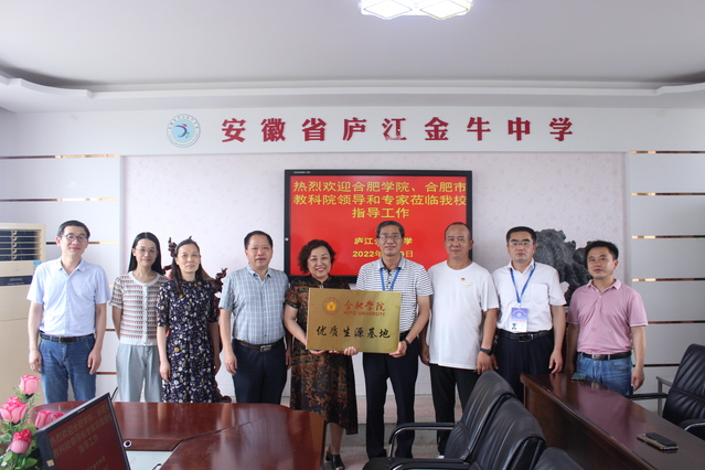 6月9日,教育学院院长江芳、副院长卫萍、副书记王迅、党政办主任杜启明以及魏晓媛博士一行,前往庐江中学、庐江金牛中学开展优质生源基地签约授牌及招生宣传活动。