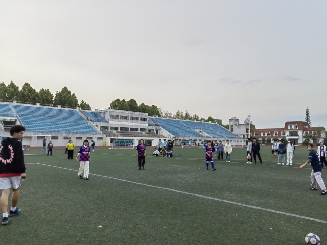 10月29号下午5时于二期操场展开了教育学院和经济与管理学院的女足新生杯比赛。比赛中,球员们你争我夺,奋力拼搏,充分展现了我校学生全面发展的精神风貌。