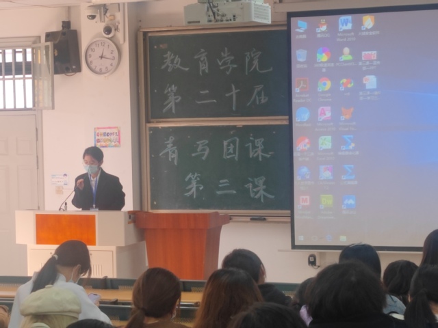 课程由教育学院团委学生会组织部委员朱思宇担任主持人,经过简单介绍后,青马团课第三课正式拉开序幕。