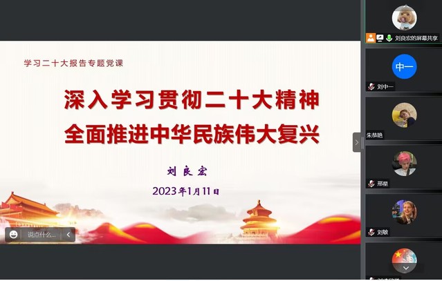 为深入学习贯彻党的二十大精神,全面把握新时代十年伟大变革的深刻内涵和重大意义。1月11日上午,教育学院党委书记刘良宏利用腾讯会议给学生学前教育支部讲授党课,题目为《深入学习贯彻二十大精神,全面推进中华民族伟大复兴--新时代这十年》