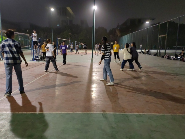 4月11日18:30教育学院与城市建设与交通学院的比赛于一区排球场准时开始。教育学院女排以2:1取得胜利。