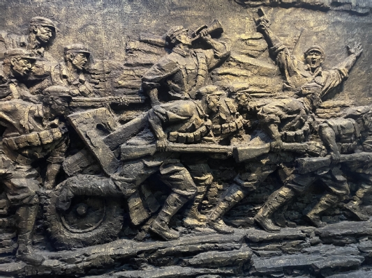 天若有情天亦老,人间正道是沧桑。安定和平的年代,是英烈们用生命垒造出来的。带着对革命烈士崇高的敬意,志愿者们走进馆内,详细去了解这场战役的历史。进入场馆后,一幅巨大的浮雕映入眼帘,浮雕上雕刻的是百万雄师过大江的壮阔景象。跟着讲解员的指引,志愿者们认真的参观各个场馆。馆中内容包括革命文物、图片、文字等等,展现了渡江战役的历史经过以及影响和推动历史发展的重要人物,详细介绍了解放军战士英勇抗战的革命斗争史。陈旧的手枪、还原的木质帆船,置身于逼真的场景中,参观者仿佛听见了战士们的呐喊声、划船声,看见战士们手持枪支站在船头,浴血奋战的场景。