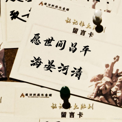 志愿者们在渡江战役纪念馆中收集了许多合肥市红色革命文化资料,为调研分析做相关准备。他们参观了馆内展示的重点历史事迹与历史人物,全方位了解渡江战役纪念馆中红色文化的继承与传播情况,同时对馆内红色文化的展示方式与途径进行记录。除了传统的雕塑模型、文字、图片描述、历史文物陈列之外,纪念馆还运用了科技化的投影放映与动态沙盆等。结束馆内调研活动,团队成员在展馆内的烈士陵墓前默哀,在凝重的历史氛围中庄严宣誓、缅怀革命先烈,深受触动写下了“愿世间昌平,海晏河清”的美好祝愿。