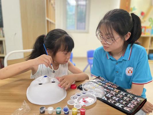 710日下午,合肥学院教育学院七彩童年,你相伴志愿团队前往包河区滨湖和园社区开展三下乡社会实践活动,团队成员杨明月、王玉两位志愿者共同为社区的孩子们带来一节京剧脸谱绘画课。