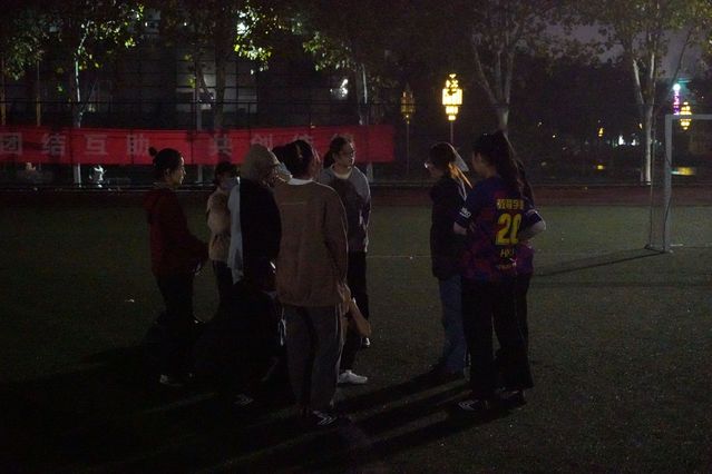 11月22日晚上八点,教育学院女足于二期操场对阵能源材料与化工学院女足。正值小雪时节,操场上满是雨后留下的积水,阵阵寒意侵袭着在场的每一位球员与观众。夜幕低垂,时间也逼近开场,球员们在球场上紧张的训练着,等待迎接今日的比赛。