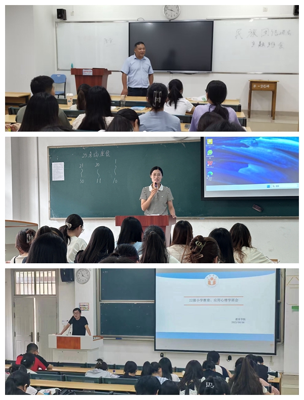 为全覆盖、立体化精准开展大学生思想政治教育,引导学生尽快适应新学期的学习生活,确保教育教学的有序开展,9月开学之初,教育学院组织上好“开学第一次主题班会”。班会由各年级辅导员分别主持进行。