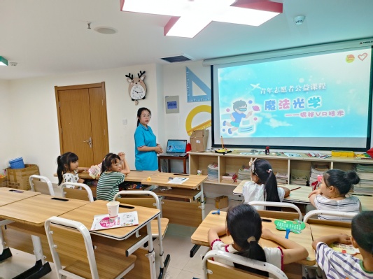 科学技术是第一生产力,为了让孩子们切身感受科技进步带来的变化,培养孩子们的科技创新意识与动手实践能力,提高孩子们的科技文化素养。710日上午,合肥学院教育学院“七彩童年,‘育’你相伴”志愿团队来到滨湖和园社区开展社会实践活动。志愿者侯鑫宇和沈叶天作为授课老师为孩子们带来了一堂以“科技创新”为主题的VR技术课程。