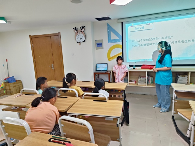 78日下午,合肥学院教育学院“七彩童年,‘育’你相伴”志愿团队来到滨湖和园社区开展社会实践活动,志愿者侯鑫宇作为授课老师为孩子们带来一堂以“身心成长”为主题的饮食健康课程。
