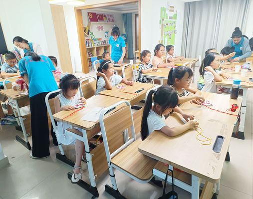 大事大结其绳,小事小结其绳。王老师在课堂中给孩子们讲述了中国结的起源与形式。它的形式多为上下一致,左右对称,正反相同,而且每个结都有自己的专属名字,或取自结饰的形状,如十字结,双钱结,或取其寓意,如平安结,如意吉祥结。为了检验孩子们当堂的学习效果,王老师还独具匠心地设计了中国结知识小抢答游戏,精美的小礼品让孩子们积极举手踊跃参与互动,场面十分热烈。《如果国宝会说话》这一栏目曾说过:“公众不是没有文化追求,而是需要更好的表达方式,让更多的文物说话。”本次课程采取寓教于乐的教学方式,孩子们不仅学得开心,文化也有了“声音。”