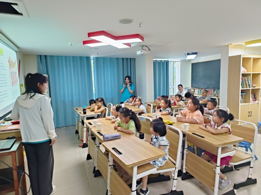 7月5日下午,合肥学院教育学院“七彩童年,‘育’你相伴”三下乡社会实践团队于合肥滨湖和园社区开展了一次意趣横生的读书分享会,志愿者张晓洁和王欣悦为孩子们带来一堂有关“民族之花处处开”的生动课程。 学习“家”文化对于培育孩子们的民族认同感和归属感有重要意义。中华人民共和国是统一的多民族国家,是五十六个民族和谐共处的大家庭。课程开始,张晓洁就告诉孩子们,了解五十六个民族是我们了解民族文化的重要途径,她从众多民族的角度出发,介绍了不同民族的风土人情和绮丽文化,从寓意吉祥的壮族特色手工艺品——绣球到回族独具特色的面点食品;从后金开国第一都城赫图阿拉古城到中国历史上建筑时间最长、工程量最大的军事防御工程——长城。孩子们在绮丽多姿的民族文化海洋中遨游,感受民族文化的魅力。