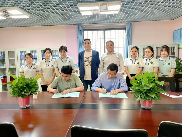 刘良宏在交流中对学校近年的发展与变化进行了介绍,就教育学院专业设置和师资力量、人才培养理念及模式、学生职业素养及技能培养、校企深度合作协同育人路径等方面,与殷世军进行了广泛深入的交流与探讨。随后,双方签订了就业实践基地协议。