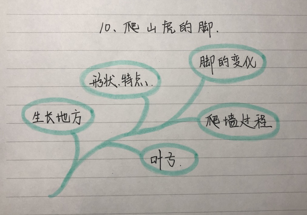 第二课时 (一)、复习导入,明确目标 1、听写词语:操场、嫩茎、舒服、均匀、重叠、空隙、叶柄、枯萎、牢固。 2、师:上节课,我们初步学习了《爬山虎的脚》,了解了课文大致的内容,书写了生字,并且了解了爬山虎生长的环境以及叶子的样子。爬山虎的叶子给你留下了怎样的印象呢?(生自由答) 3、师:文章题目是“爬山虎的脚”,作者先写了爬山虎的叶子。这是为什么呢?爬山虎的脚到底是什么样子的,又是怎样爬的?作者是怎么了解到这些的?这节课我们就来继续阅读文章,发现秘密。 【设计意图:在导入新课前进行词语听写,能够有效检测学生词语的掌握情况。回顾第一课时的学习内容和收获,顺势提出新的学习任务,建立起两课时学习内容和任务之间的联系,让学生怀着积极的学习期待心理。】 (二)、细读课文,聚焦观察 1、体会“脚”的特点。 (1)师:默读文章后三个自然段,想一想课文写了爬山虎“脚”的哪几个方面?从哪些地方可以看出作者观察特别仔细?请同学们在句子旁边做简单批注。 (2)师生互动交流:交流“脚的位置、形状、颜色”。 (3)深入感悟。 ①课件呈现“脚”位置的句子。 师:同学们,爬山虎的脚在哪里呢?(出示图片)这就是茎上长叶柄的地方。那它的脚长在哪里?哪位同学愿意上台画出脚的位置?(生上台) ②课件出示“脚”形状的句子。 师:那么,爬山虎脚的形状又是怎祥的呢?请同学们朗读这个句子。(生朗读) 师:作者把爬山虎脚的样子比作什么?(生答) 师:当它巴住墙的时候变成了什么样子呢?谁能联系下文说说。(指名回答) (师出示“蛟龙的爪子”和“爬山虎的脚”的对比图) 师:观察这两张图片,它们和爬山虎的脚相似吗?(生答) 师:叶圣陶爷爷为什么能写得这样具体形象呢?(生答:仔细观察)是啊,叶圣陶爷爷观察得多么仔细,描写得多么逼真! ③课件出示“脚”颜色的句子。 师:爬山虎的脚是什么颜色的?(生答)爬山虎的脚位置长得这么隐蔽,形状像蜗牛的触角那么细,都被叶圣陶爷爷发现了。大家猜猜,他是怎么发现的? (5)教师小结。 师:是啊!叶圣陶爷爷因为经过连续仔细的观察,才能抓住爬山虎脚的特点,才会写得这么细致。让我们再齐读这段文字,进一步感悟它的写法吧!(生朗读) 2、体会“爬”的过程。 (1)师:继续默读课文,思考爬山虎是怎样爬的?边读边把写爬山虎怎样爬的动词圈画出来。 (2)师生互动交流。 ①交流汇报。师:作者都用了哪些十分贴切的动词写出了爬山虎爬的过程呢?(课件出示:触、巴、拉、贴、爬。) ②再读交流。师:想想这几个动词的位置能调换吗?为什么?请再次默读课文思考。 ③总结提升。师:这些词是有先后顺序的,不能互换,它们之间也存在着因果关系,比如,正是细丝由直变弯曲,缩短了茎与墙的距离,产生了拉力,才使它在墙上贴得紧。叶圣陶爷爷准确运用了这些动词,才把爬山虎的脚是怎么爬的过程写得很具体,写得这么有序。我们应该学习这种准确表达的方法。 ④师:假如你就是那棵爬山虎,告诉大家你是这样爬的?(指名朗读课文)你们读着读着,老师仿佛看到了那棵爬山虎正一脚一脚地往上爬。 (3)加深理解。 师:这里的“一脚一脚地往上爬”能换成“一步一步地往上爬”吗?为什么? 师小结:原来爬山虎可不像动物那样几只脚交替着爬,而是长一只脚巴住墙,再爬就必须再长一只脚,再巴住墙。一直往上长,必须不断长出新脚。所以,叶圣陶爷爷才说爬山虎是“一脚一脚”往上爬。 (4)课件演示。 演示爬山虎爬的过程,一边演示,师生一边诵读课文内容。 3、比较“脚”的不同。 (1)发现变化。 师:叶圣陶爷爷还知道了爬山虎脚的秘密,你们知道是什么吗? (2)交流反馈。 ①发现脚之秘密。师:谁能来说说是什么秘密吗?(指名回答) ②感受脚之力量。师:“要是你的手指不费一点儿劲,休想拉下爬山虎的一根茎”这句话说明了什么呢?(指名回答) ③激发喜爱之情。师:可见爬山虎的脚巴住墙是多么牢固啊!风能掀下它,不让它继续往上爬吗?(不能!)雨能阻挡它,不让它向上攀登吗?(不能)可见爬山虎的脚具有多么不屈不挠的攀登精神啊!现在,你对爬山虎的脚产生了什么新的感受?(生自由回答) 4、小结方法 (1)师:叶圣陶爷爷为什么能向我们展示这么可爱的爬山虎?你从作者观察爬山虎中受到了哪些启发? 【设计意图:在学习描写爬山虎脚的重点部分,理解爬山虎是怎样一脚一脚往上爬有一定的难度。在教学时要采用多种方式引导学生读懂,并充分交流读书的收获。为了突破这一理解上的难点,借助多媒体展示爬山虎紧贴着墙往上爬的课件,一边演示一边读文,图文结合,引导学生自主发现爬山虎是怎样一脚一脚往上爬的。课文的最后一部分,通过运用对比的方法引导学生进行学习。】 (三)、教师总结,拓展延伸 1、师总结:同学们,世间万物丰富多彩、美不胜收,而且有着千丝万缕的联系。如果我们细心观察,就能发现许多大自然的奧秘。课后,请同学们仿照《爬山虎的脚》一文的观察方法,仔细观察一种植物。观察的时候,可先从远处整体看,再从近处一部分一部分仔细看, 特别要细心观察它的茎、叶、花,看看有什么特点,甚至有什么变化,做好观察记录,最后再具体写下来。 2、布置作业:课件呈现课后资料袋,自主选择一种记录方法进行记录。下节课交流讨论。 【设计意图:利用资料袋,观察自己感兴趣的植物,并做记录,使学生体会到观察是