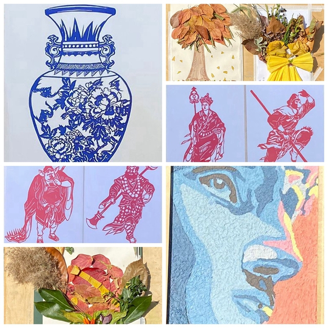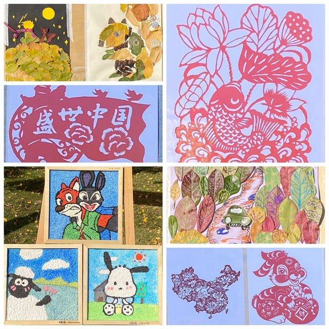 本次展览作品由21级学前教育普本班学生完成,涉及剪纸刻纸、树叶粘贴画、纸浆画等多种艺术表现形式,作品色彩鲜明、奇思妙想、稚趣盎然,体现了学生们对艺术的热爱,凸显了学前专业特色。展出期间,前来观看的学生也络绎不绝,他们在各式各样的作品前或驻足欣赏,或细心品味,不时用手中的相机或手机拍摄,留下精彩画面。