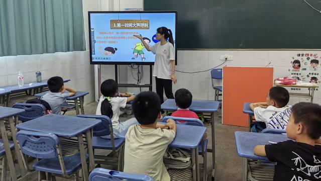 课程最后,教师就如何自救进行提问,学生们踊跃发言:“要保持冷静,不要惊慌失措”“要寻找机会呼救”“有漂浮物时,可以抓住漂浮物”“要尽量保持头部在水面上,利用身体的浮力支撑自己”……课堂的气氛活跃热烈,学生们的回答此起彼伏。他们积极参与课堂问答环节,还在课后主动询问老师更多关于水域安全的问题。
