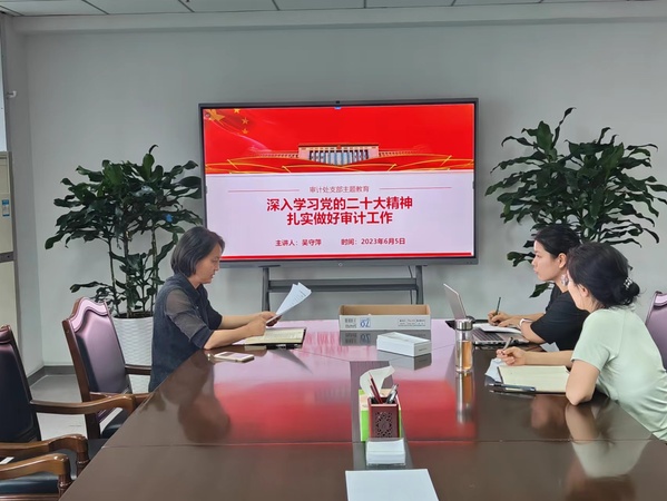 529日,支部召开会议,传达学习习近平总书记主持召开二十届中央审计委员会第一次会议精神,提高了对新时代新征程审计工作的理解与认识。支部书记吴守萍领学了《习近平著作选读》第二卷、《习近平新时代中国特色社会主义思想专题摘编》节选内容。会上还进行了“三问”研讨,围绕 “过去学得怎么样、现在干得怎么样、将来打算怎么办”,进行了深入讨论。
