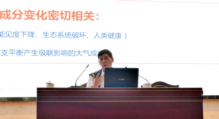 报告会上,刘文清院士从基本情况、技术进展、发展思路三方面进行详细报告了我国“双碳”目标下生态环境科技发展情况。他指出,目前我国“碳中和”面临多维度的挑战,环境高科技体系是我国实现绿色低碳发展的基础,他详细介绍了光科学技术、大气环境立体探测技术等研究成果,并表示绿色低碳发展是国家重大发展战略,只有依靠自主创新和产业升级,才能实现跨越式发展。他鼓励青年一代培养创新意识,掌握核心技术,为绿色发展提供不竭动力。