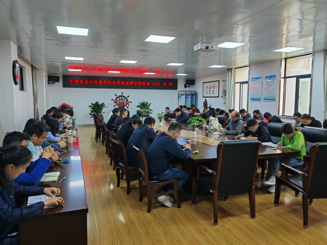 为更加有效地推进本科教育教学审核评估工作的深入进行,高质量地迎接专家线上线下的考察评估任务,10月29日下午,生物食品与环境学院组织开展了2024年度秋季学期第三次全院教职工大会,学院党政领导班子及全体教师参会。会议由学院副院长(主持工作)阮班锋主持。