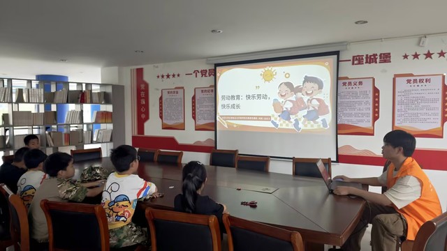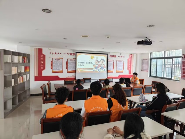 活动现场,大学生志愿者化身“小老师”,用生动活泼的语言和精美PPT,向孩子们讲解了劳动的意义和价值。从古代的农耕文明到现代的科技进步,从日常生活中的家务劳动到伟大的劳动者故事,孩子们听得津津有味,不时举手提问,现场气氛十分热烈。在互动环节,志愿者们以“劳动知识大挑战”为主题开展趣味问答,为了激发孩子们的参与热情,志愿者提前准备了色彩缤纷的糖果作为奖励。随着贴近生活与学习的问题接连抛出,孩子们纷纷踊跃举手,眼神中满是期待。有的孩子清晰准确地说出劳动法的名称,劳动的发展趋势;有的则列举出洗碗筷、叠衣服、拖地等多项家务劳动。