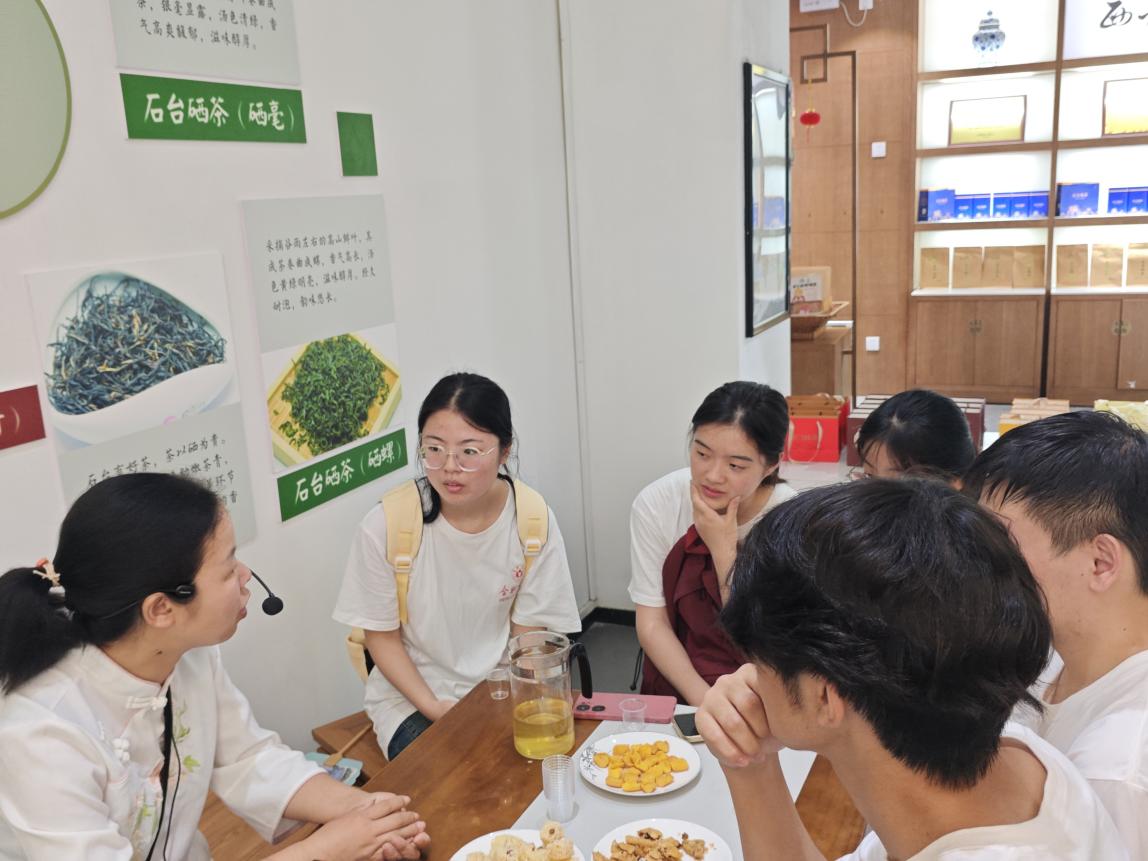 图为调研团成员西黄山茶叶实业有限公司讲解员了解硒茶的种类。
