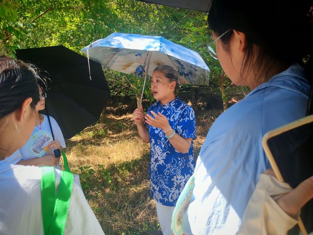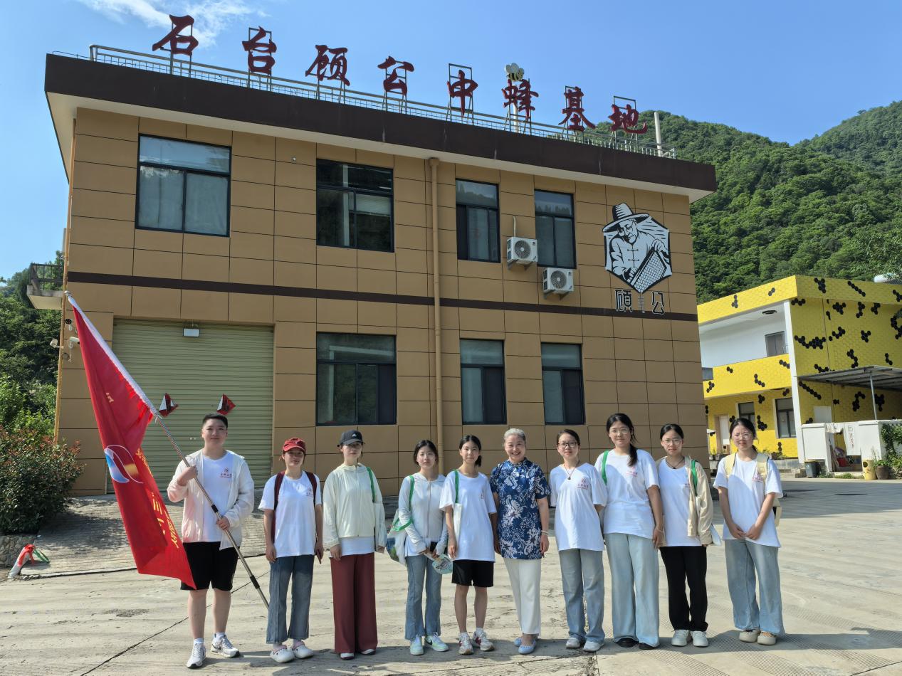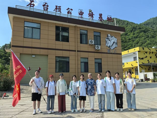 下午两点,一组同学奔赴石台顾公中蜂基地。基地负责人热情接待了他们,详细讲解了蜜蜂的习性,科普了不同蜂蜜对人体的功效,还介绍了蜂蜜产品对外售出的价格为150元每斤。同学们认真聆听,结合专业知识提问,深入探索特色蜂产业的发展模式,亲手体验摇蜜,在“甜蜜劳作”中感受养蜂人的艰辛与坚守。同时聚焦气候变化对蜜蜂生存的威胁,深刻理解“酿蜜”背后的生态命题,为乡村特色产业发展与生态保护协同共进,探寻观察视角与研究思路。