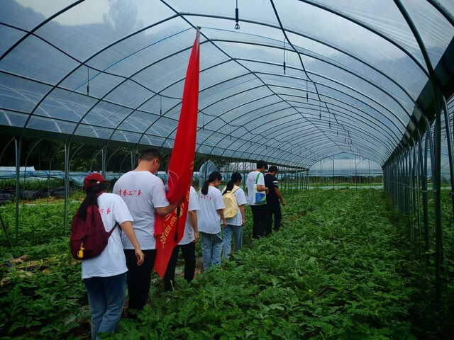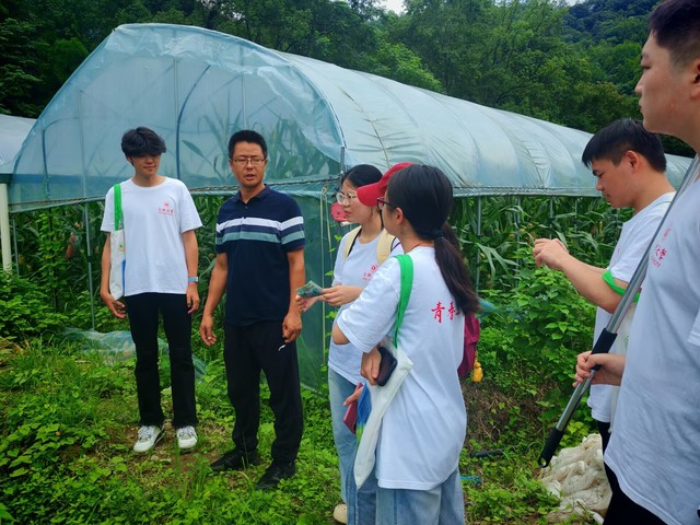 6月30号上午十点,调研团分为两组。一组走进农户家中开展入户宣讲,用“接地气”的语言,把生态保护、产业发展政策转化为村民听得懂的“家常话”,在传递知识中倾听诉求,搭建起知识传递与情感共鸣的桥梁,助力乡村发展“内外兼修”;另一组同学在永福村吴主任的带领下,前往蔬菜基地。基地大棚内,玉米、西瓜、黄豆长势喜人,一片生机勃勃的景象。调研团了解到基地占亩约15亩,羊肚菌亩产约700斤,售价约500元每公斤。羊肚菌种植两季,其余时间种植西瓜,玉米和黄豆等作物,售卖方式通常为干货批发和景区售卖。这次实地考察为后续的研究及宣讲内容优化积累了宝贵的一手资料从产业一线挖掘乡村振兴的生机活力。