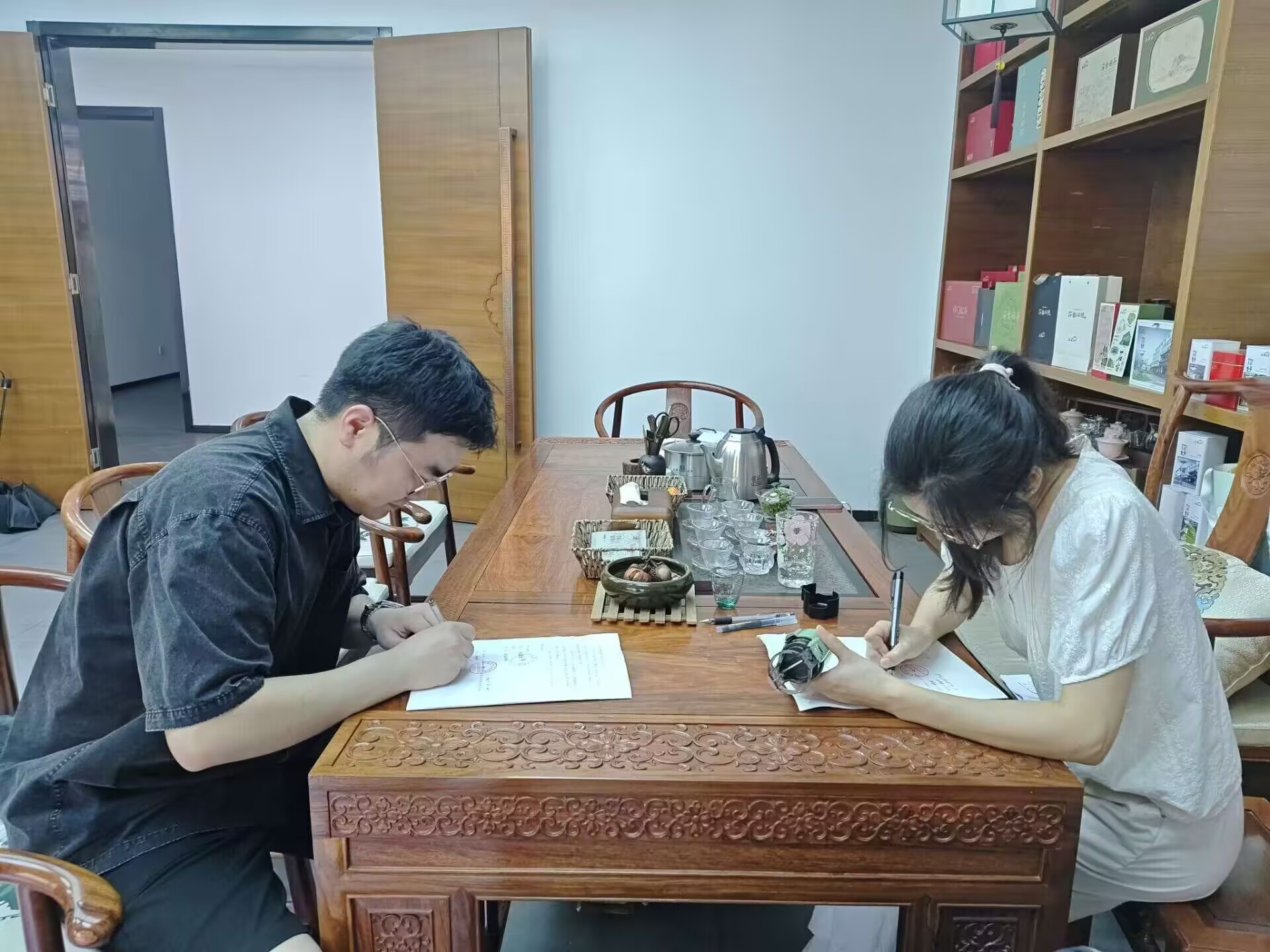 图为杨林老师与西黄山茶叶实业有限公司负责人签署合同