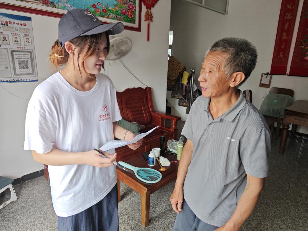 图为调研团成员入户走访调查
